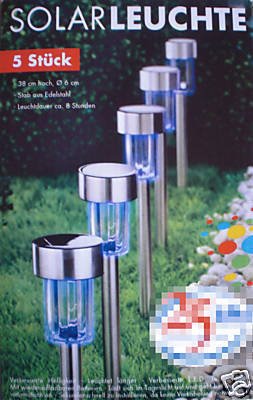 Solarleuchten Item ID: #274Item DescriptionDie Leuchten werden Tagsüber mit einer integrierten Solarzelle aufgeladen und geht bei Dunkelheit automatisch an. Das Set beinhaltet 5 LED Solarleuchten, selbstverständlich enthält jede einen NiMh Akku. 38 cm hoch 6 cm durchmesser Stab aus Edelstahl ca. 8 h Leuchtdauer Item ReviewsSchreiben Sie eine Kundenbewertung |