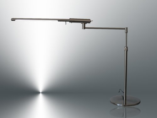 Um es kurz zu machen: Diese Schreibtischlampe lässt sich an fast alle Gegebenheiten anpassen. Durch den höhenverstellbaren langen Schwenkarm und den schwenkbaren Lampenkopf kann man die Lampe für zwei nebeneinander stehende Tastaturen verwenden. Dadurch, dass der Lampenkopf auch noch drehbar ist, kann man das Licht sehr gut nach vorne oder hinten lenken, so dass ein blendfreies Arbeiten ermöglicht wird. Der Lichtkegel ist genau definiert und die Lampe liefert ein ausgezeichnetes Licht. Durch die langen Leuchtröhren werden Schlagschatten auf dem Schreibtisch stark reduziert. Kleiner Punkt, der zu bedenken ist: Der Standfuß ist natürlich aus statischen Gründen recht groß und schwer, sieht aber gut aus. Auch optisch ist die Lampe sehr gut gelungen. Ein Kauf ist sehr zu empfehlen.