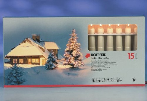 Lichterketten Item ID: #252Lichterkette WEIHNACHTSKETTE 15 AUSSEN 9751503000Item Description? Toplampen, E 10, elfenbein ? Sockel und Kabel grün, mit Trennsteckvorrichtung ? Länge der Zuleitung : ca. 1,60 Meter ? Kerzenabstand : 80 cm, 220Volt, GS geprüft Item ReviewsSchreiben Sie eine Kundenbewertung |