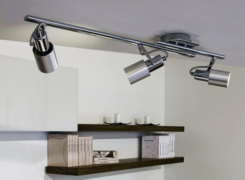 Spotleuchten Item ID: #569Moderne energiesparende Lichtschiene „Sines“ in Alu gebürstet und Chrom – 3-flammig – Länge: 750 mmProduct Information: