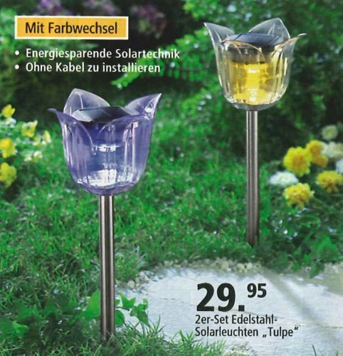 Solarleuchten Item ID: #271Solarleuchten Tulpe 2-er Set mit LED – Farbwechsel und EdelstahlfußProduct Information: