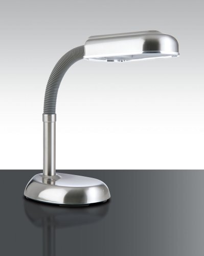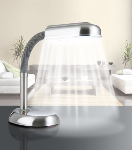 Diese Lampe spendet wirklich tolles Licht, leuchtet eine angemessene Fläche aus ( ich habe diese Lampe als Schreibtischlampe für meine Kinder gekauft ) und bin wirklich sehr zufrieden. Das Design ist meinem Geschmack nicht ganz entsprechend, aber mir ging es in diesem Fall nur um die Lichtverhältnisse. Einziger Nachteil aus meiner Sicht bei dieser Lampe ist der Ein-und Ausschalter, der sich nicht am Lampenfuß, sondern seltsamerweise oben am Lampenschirm befindet, so dass man sich je nach Drehung des Lampenschirms schon etwas verrencken muß, um ihn direkt zu entdecken.Trozdem ist diese Lampe aus meiner Sicht sehr zu empfehlen, da das Licht wirklich sehr angenehm hell und stark ist.